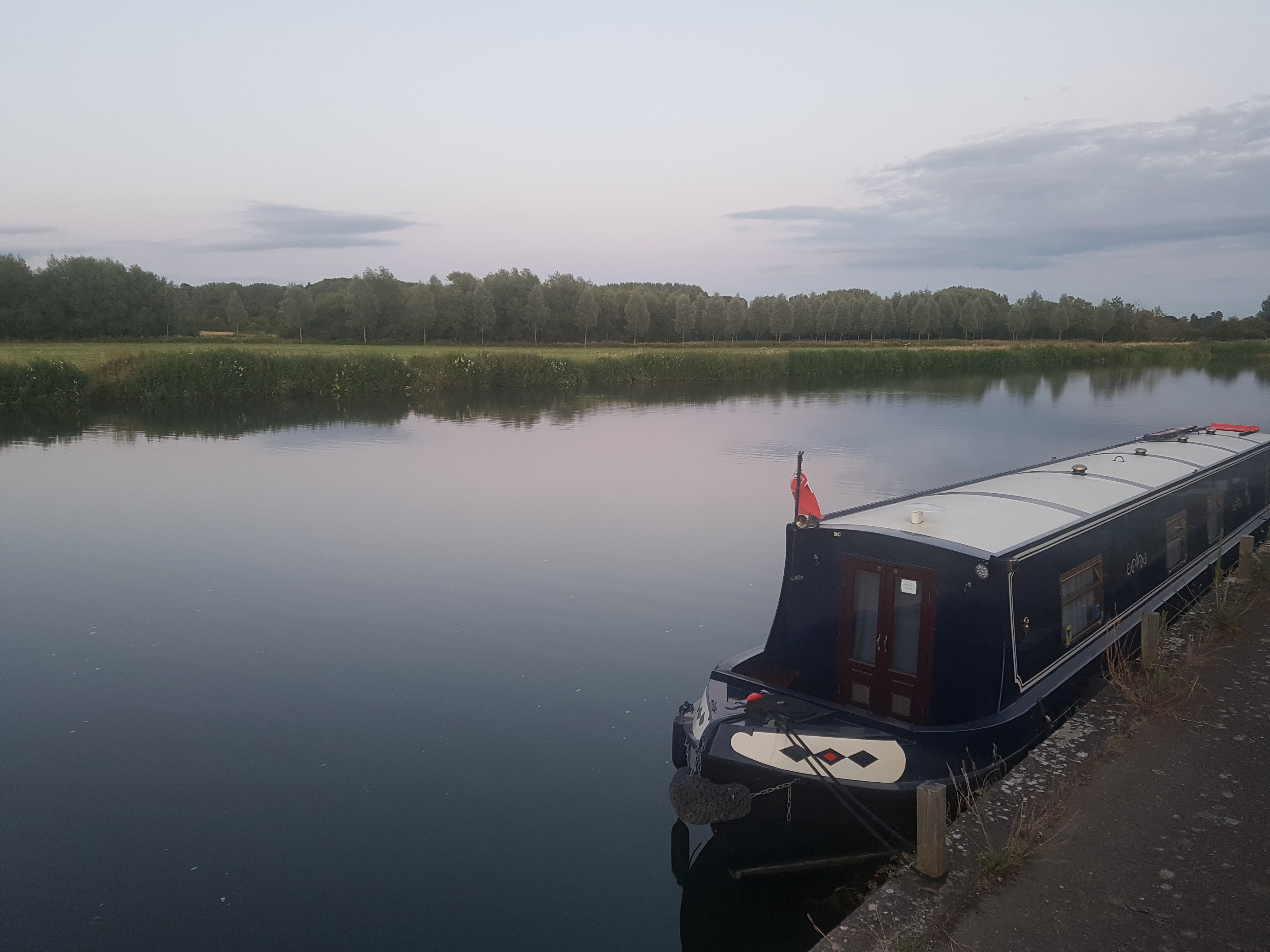 After about 10 minute’s walk, the path joins the river and allows fairly clear views of the water between small shrubs and some moored boats. At this point, it was about 45 minutes after sunset and my bat detector was starting to pick up a different sound, a faster crackly one.