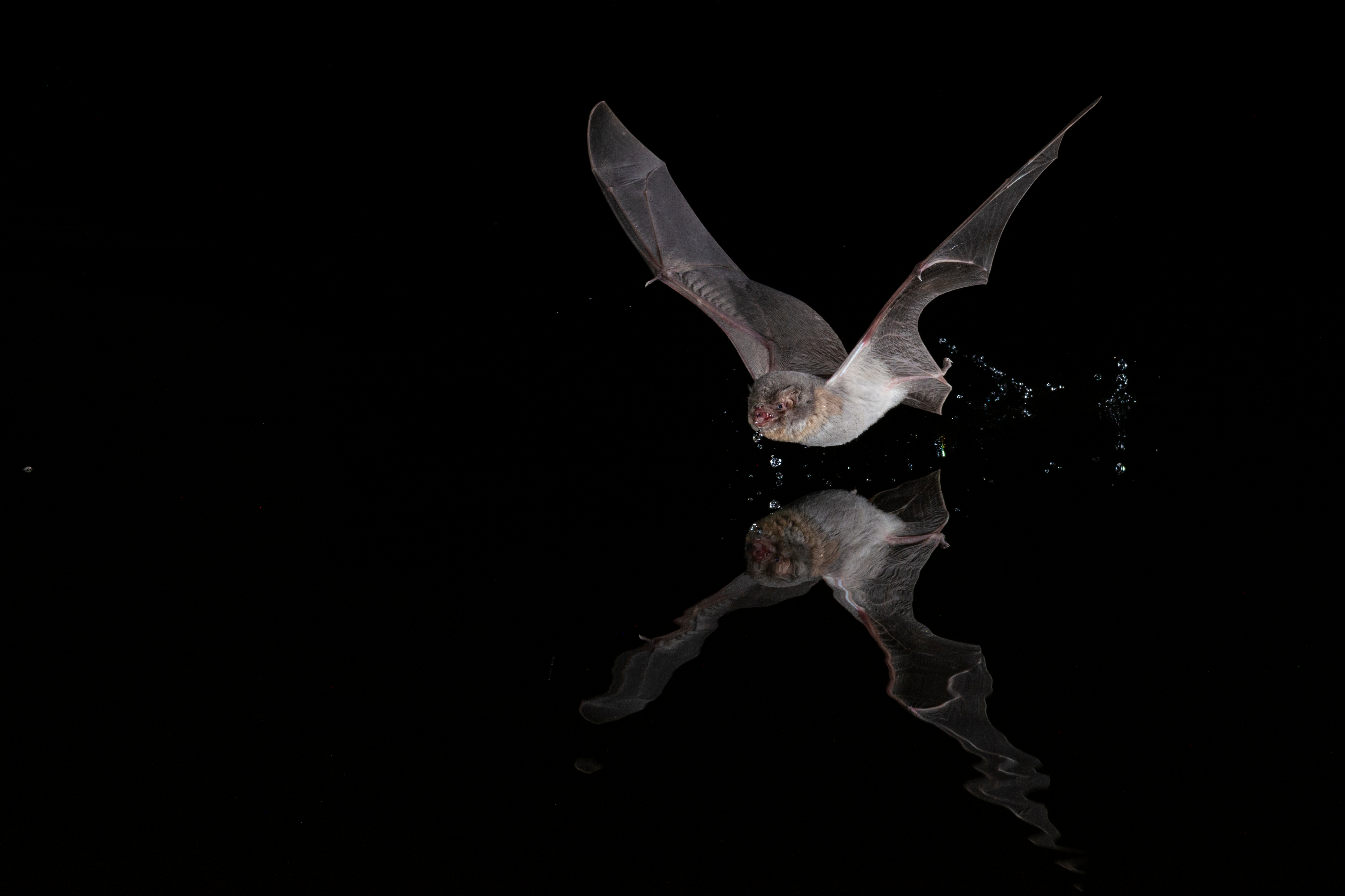 The same happens with Daubenton’s bats. Their chirps arrive directly from the bat, but also reflected from the surface of the water. In effect, the bat and its reflection are coherence sources of the same sound which arrive having taking routes of different lengths. As with light, loud and silent bands result, depending on the position of the bat relative to the water and the listener, and the wavelength of sound.