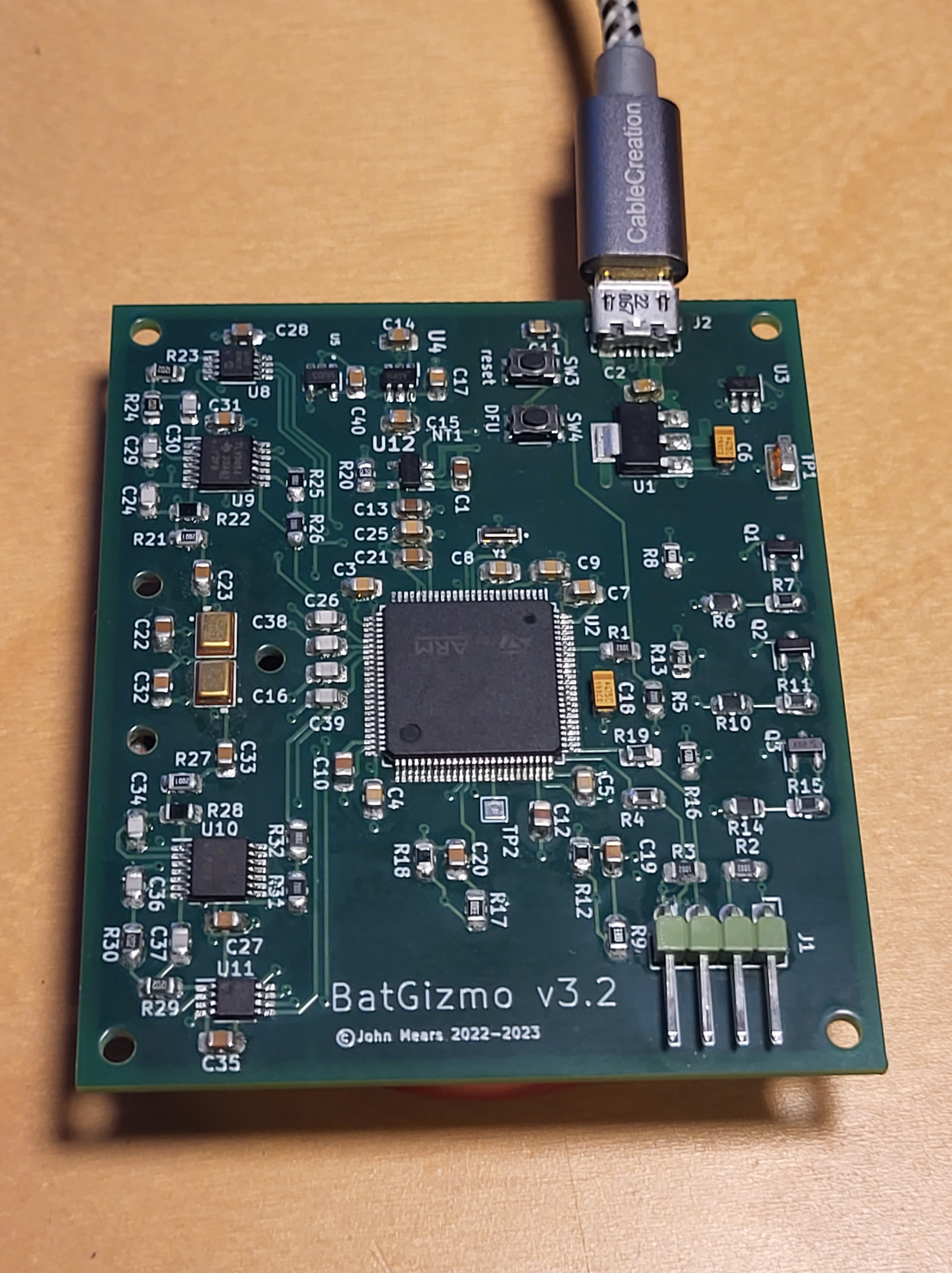 The BatGizmo is a full spectrum bat detector that I started work on during covid lockdown. This page outlines the design decisions that I took, including both the successful and the less successful ones. My hope is that this will prove useful to others.