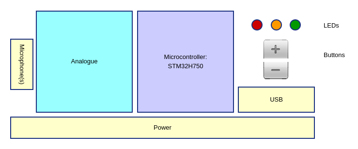 • The raw USB 5V input powers two independent 3.3V regulators in parallel. One generates digital power (VDD) and one generates analogue power (VDDA). This isolates digital noise originating from the MCU from the analogue circuitry.