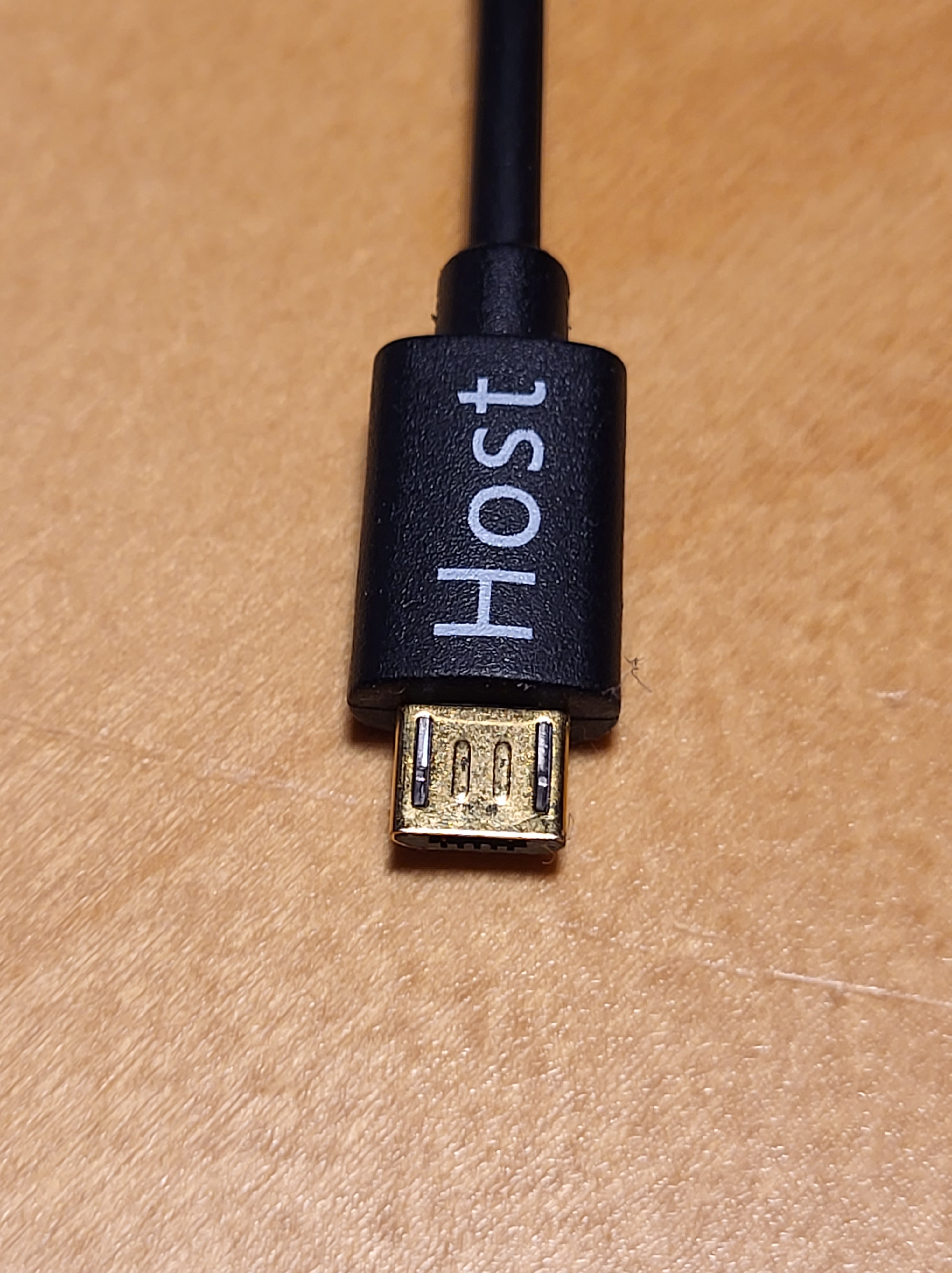 The BatGizmo can be used with a phone or tablet that supports USB On-The-Go, which all modern ones do. A USB OTG cable must be used, with the end labelled “host” plugged into the phone or tablet.