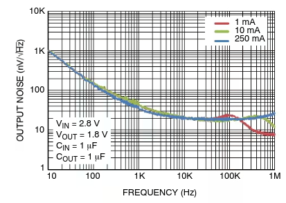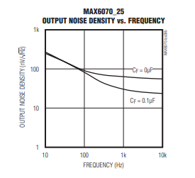 The MAX6070 is the low noise voltage reference used to generate 1.8V. Cf is fitted as 0.1uF, so the lower curve applies.
