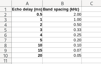 It’s straightforward to create a spreadsheet that predicts band spacing from echo delay for the ideal bat, ie slow moving bats with qCF chirps: