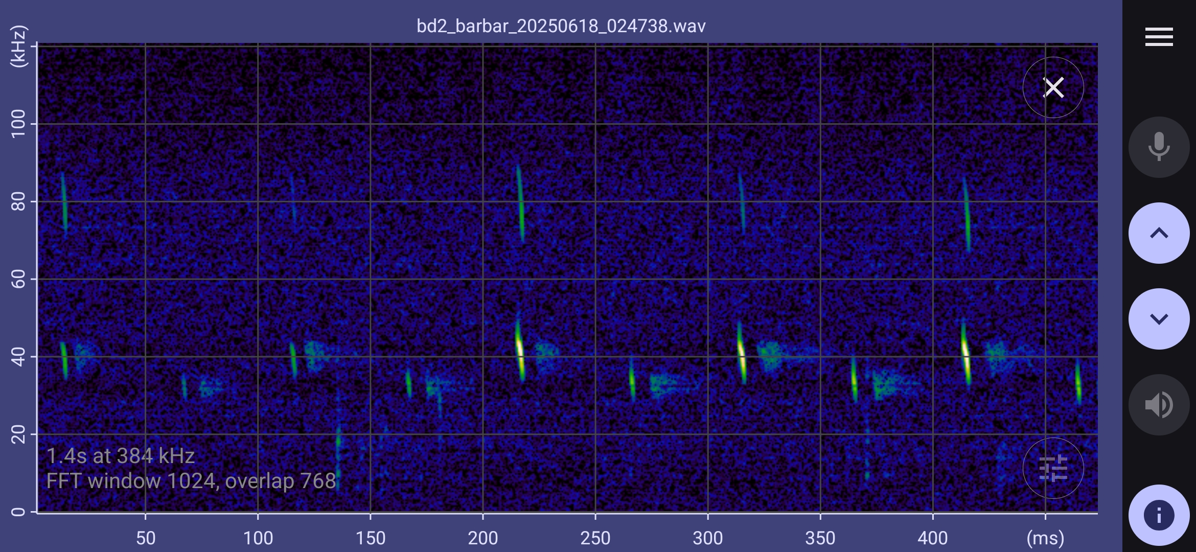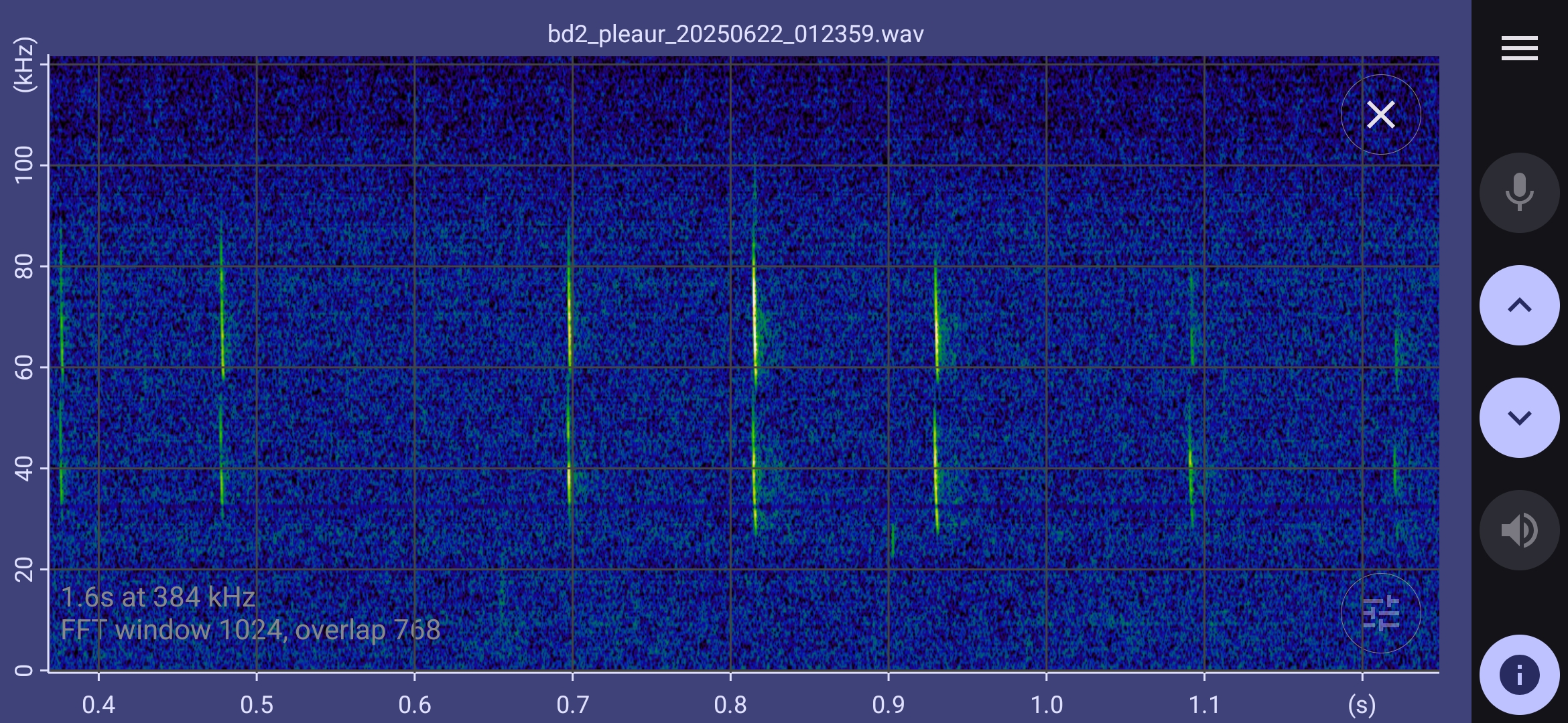 • Manually inspect a proportion of the BatDetect2 verdicts. It is very reliable for easily recognised bats calls such as pipistrelles, barbastelle; somewhat reliable for the big bats (noctule, leisler and serotine), and not very reliable for myotis bats.