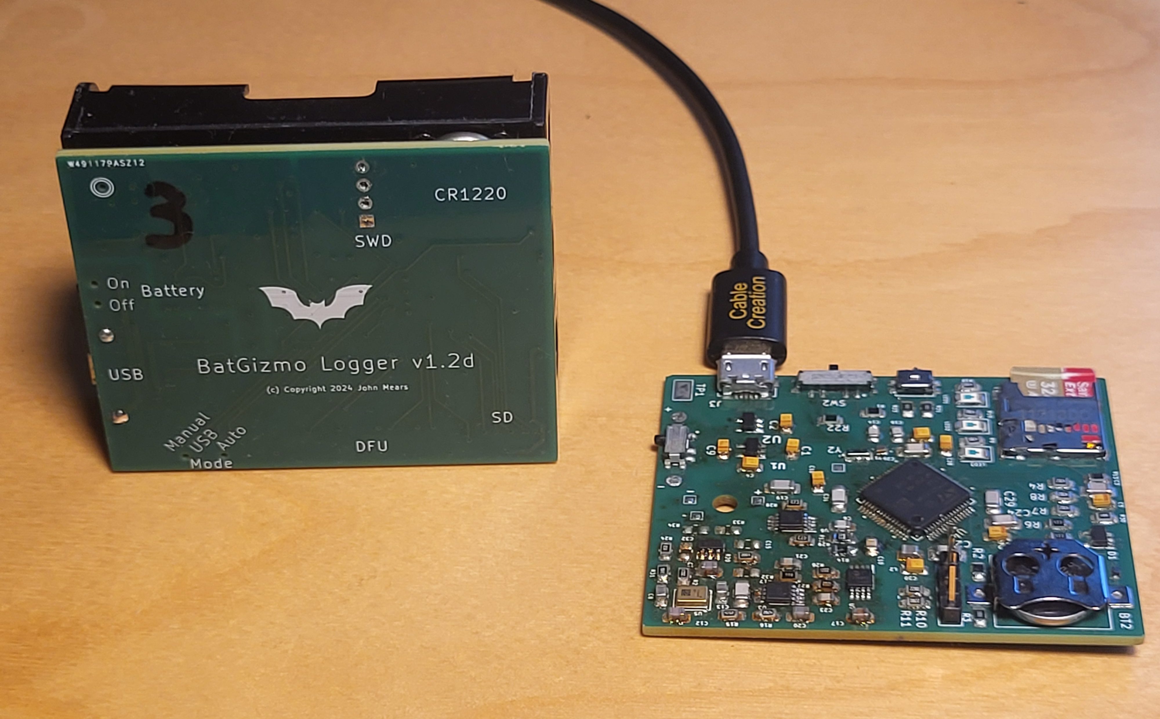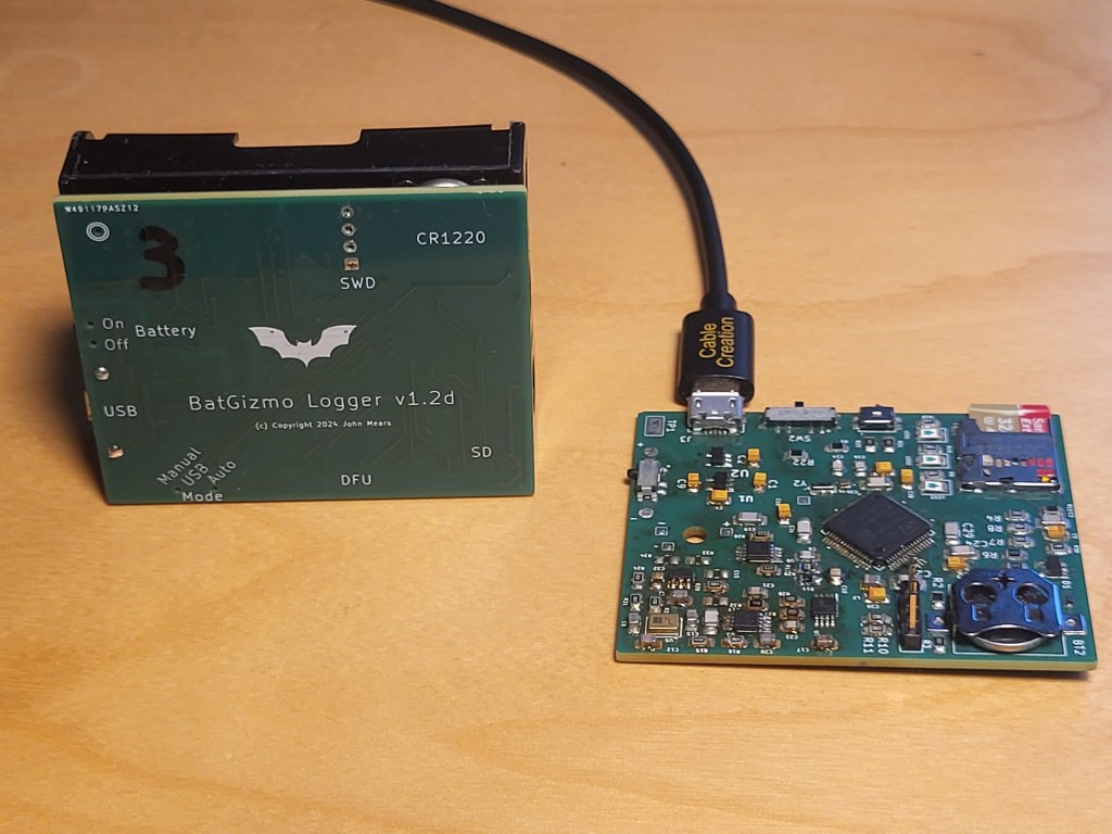 The BatGizmo detector can be used as a USB microphone for live detection with the Android app, or for unattended passive logging to SD card. It fits in a standard Audiomoth case.