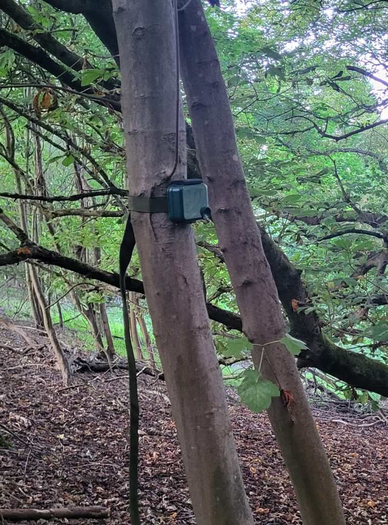 My basic approach was to identify a variety of locations in the site where bats were likely to be be found. I spent about an hour from sunset at each location doing live detection with the USB microphone and tablet to see if bats were indeed present. If so, I set up unattended overnight loggers to make triggered recordings to SD card. As far as possible, detector positions were chosen to be clear of surfaces, trees and shrubs that might reflect sound and result in a unclear recording.