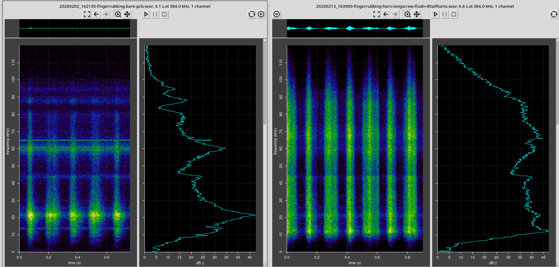 Of course these measurements are far from rigorous and scientific, but provide a strong indication that a horn can be useful in increasing sensitivity and somewhat flattening the microphone response.