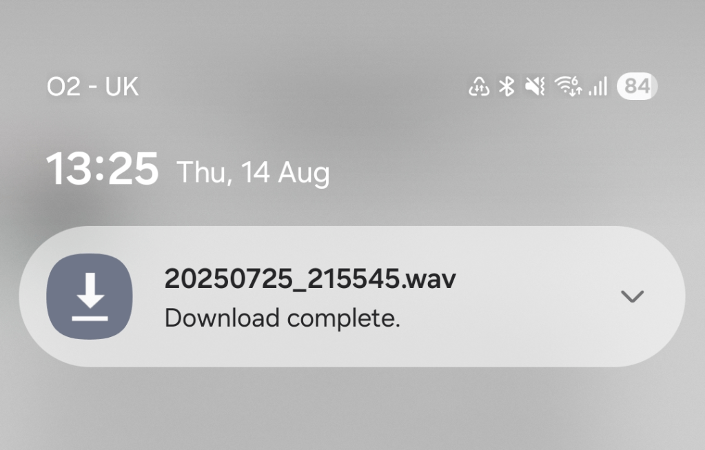 (1) Tap on the file to be downloaded in the Facebook app, in this case, 20250725_215545.wav.