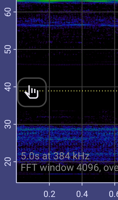 BatGizmo can display live spectrograms based on data from an external USB microphone. There is currently no support for doing this from the device’s own microphone, as they typically lack sufficient bandwidth. BatGizmo has support for USB AUC version 1 compliant microphones, which is the majority of microphones intended for bat recording. It also has limited support for UAC version 2, used by a minority of bat microphones.